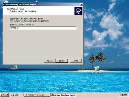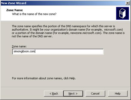 In urmatoarea fereastra tastati un nume dorit pentru domeniul dumneavoastra si dati clic pe Next. Aceasta zona specifica portiunea spatiului DNS pentru care serverul este autoritar. Numele zonei nu este numele serverului DNS.