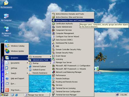 Cu interfata sa familiara, Windows Server 2003 este usor de utilizat. Noii asistenti de tip wizard simplifica setup-ul diferitelor roluri de server si fluentizeaza sarcinile de administrare, asa incat pana si serverele fara administratori dedicati sa poata fi usor gestionate. In plus, administratorii au la indemana mai multe caracteristici noi sau imbunatatite, proiectate pentru facilitarea implementarii Active Directory. Copii ale structurilor Active Directory de mari dimensiuni pot fi distribuite pe medii de backup. Upgrade-ul de la versiunile anterioare, cum ar fi Windows NT Server 4.0, este simplificat cu Active Directory Migration Tool (ADMT), care copiaza parolele si este deplin programabil prin scripturi. Mentinerea Active Directory este mai usoara cu noile caracteristici, cum ar fi posibilitatea de redenumire a domeniilor sau redefinire a schemelor. In acest fel, administratorii dispun de flexibilitatea necesara pentru a face fata schimbarilor organizationale ce pot aparea. In plus, cross-forest trusts permite administratorilor sa conecteze structuri forest Active Directory, asigurand autonomia fara a sacrifica integrarea. In final, instrumentele imbunatatite pentru distribuire, cum ar fi RIS (Remote Installation Services), ajuta administratorii sa creeze imagini de sistem pentru a le instala pe servere.