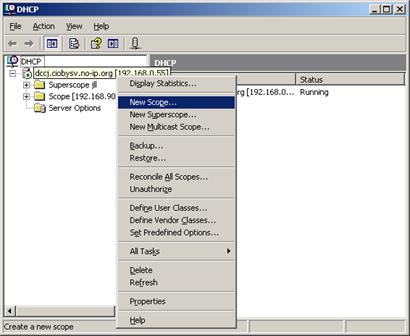Intr-un domeniu Windows Server 2003 toate server-ele DHCP trebuie sa fie autorizate in Active Directory. Acesta este un exemplu al noii initiative de securitate al Microsoft, in incercarea de a elimina server-ele DHCP neautorizate ce sunt in domeniu. Pentru a autoriza un server trebuie sa va logati (sau RunAs) ca un membru al grupului Enterprise Admins. Apoi dati clic dreapta pe icon serverului DHCP si alegeti optiunea Authorize.
