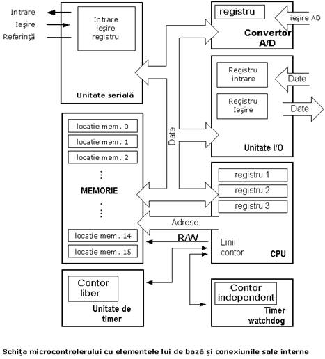 camerele video, video recorderele, compact-disk (CD) playere si altele. Un microcontroler este similar unui microprocesor. Ambele contin o unitate centrala de prelucrare sau UCP (cenral