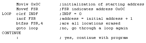 Exemplu unei parti a programului ce scrie datele 0xEE în prima