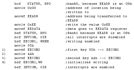 doua valori sunt scrise în EECON2 care serveste doar pentru acel