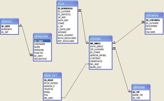 Oficiul de Cadastru Bucuresti se ocupa cu avizarea din punct de vedere tehnic a documentatiilor cadastrale. Pentru a putea tine o evidenta clara a tuturor lucrarilor intrate in institutie s-a implemetat un sistem informatic cu ajutorul caruia sa se poata controla fluxul datelor. Acest sistem informatic va cuprinde doua fluxuri de date: