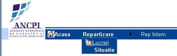 Urmatorul pas in fluxul lucrarilor este constituit de repartizarea lucrarilor intern in fiecare serviciu pe operatori. Pentru a intra in aceasta interfata trebuie ales meniul Rep Intern->Lucrari.