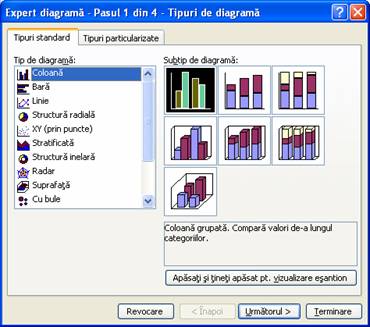 din 4 - caseta de dialog Tipuri de diagrame, aveti posibilitatea
