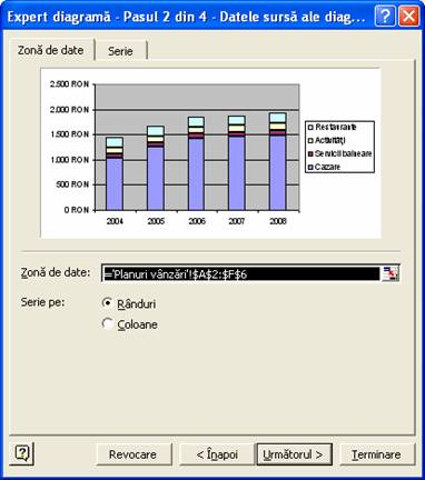 Pe fila Zona de date, verificati daca optiunea Rânduri este selectata si faceti clic pe Urmatorul.