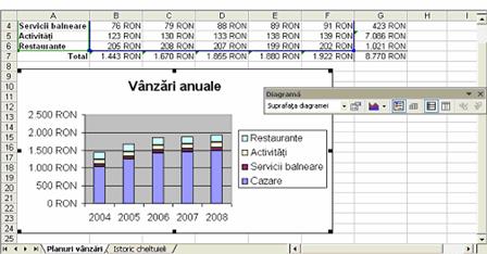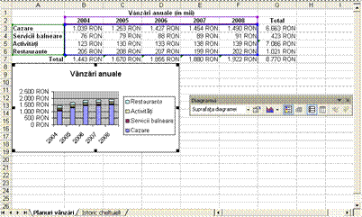 De obicei, datele stocate în foile de lucru Excel necesita actualizari periodice. Daca se schimba datele sursa, diagrama corespunzatoare se actualizeaza automat.