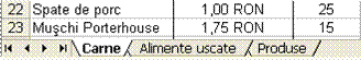 Bucatarul sef de la Adventure Works utilizeaza mai multe foi de lucru într-un registru de lucru. El comanda diferite tipuri de alimente de la furnizori diferiti: un furnizor ofera carne, cum ar fi carne de vaca si de pui; alt furnizor ofera marfuri uscate, cum ar fi faina si zahar; cel de-al treilea furnizor ofera produse diverse. Bucatarul sef urmareste toate alimentele pe care le-a comandat de la fiecare furnizor pe o foaie de lucru separata din acelasi registru de lucru. El poate vedea fiecare foaie de lucru în registrul de lucru Alimente, facând clic pe selectorul corespunzator al foii.