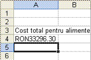 Faceti clic pe celula A3 din foaia de lucru Rezumat, tastati Cost total pentru alimente si apasati tasta sageata în jos