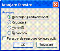 Excel afiseaza caseta de dialog Aranjare ferestre.