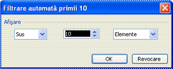 Va aparea caseta de dialog Filtrare automata primele 10.