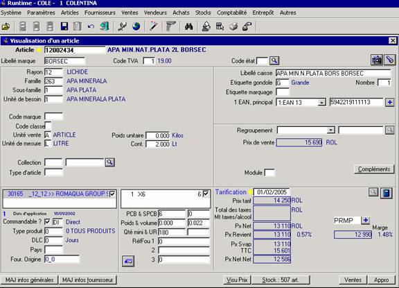 Nota bene : pentru a avea o viziune precisa asupra ansamblului achizitiilor, trebuie utilizat fie « Caietul de intrari », fie « Statistica de achizitii pe furnizor » sau pe familie - care se gaseste in partea de « Editare » a meniu-ului « Cumparari ». Utilizarea acestora este similara celui tocmai prezentat.