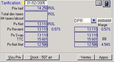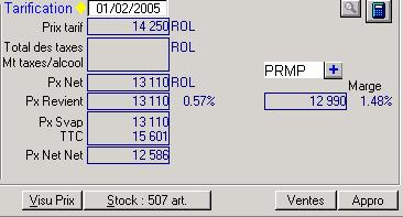 Pret SVAP = Pret net. Este pragul de vanzare in pierdere - pretul de vanzare nu poate fi sub acest prag (blocaj cu parola). Pretul SVAP (Seuil de Vente A Perte - pragul de vanzare in pierdere) este raportat la ultima intrare de marfa.