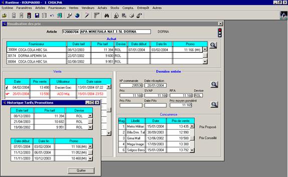preturi tarif) si eventualele promotii de achizitie. De asemeni, in functie de extractiile de concurenta se pot vizualiza preturile de vanzare ale diferitilor concurenti (introduse de serviciul Pricing).
