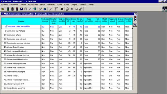 1 - comanda nevalidata (pentru validarea unei comenzi este obligatorie trecerea prin toate liniile, chiar daca cantitatea de comandat este 0). In fiecare seara se face eliminarea automata a tuturor comenzilor din situatia 1.
