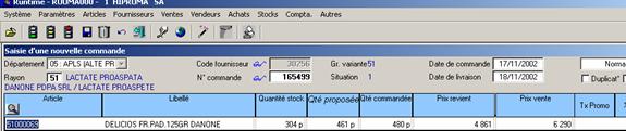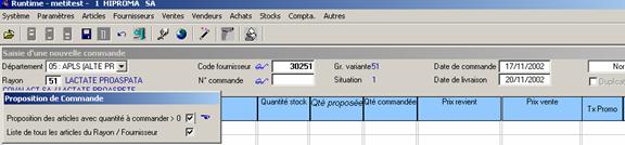 x | Fara propunere de comanda si afisaj al tuturor articolelor ale furnizorului pentru raion. Introducere directa a cantitatilor de comandat. |