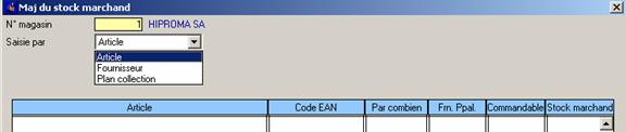 pornind din fisa de articol - cu ajutorul butonului « Stoc » din