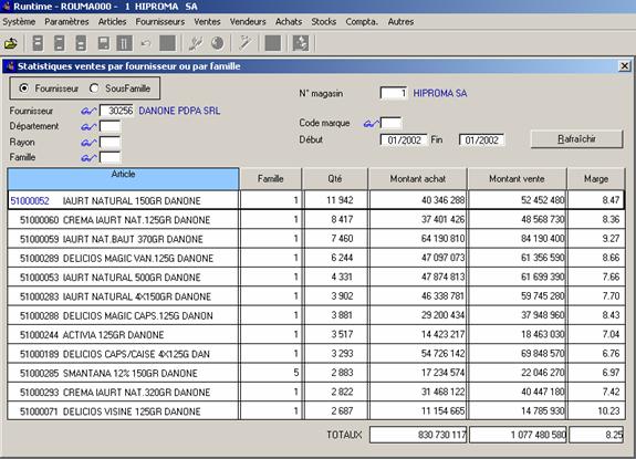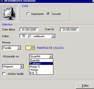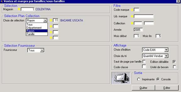 Selectia se poate face fie la nivel de familie sau sub-familie, fie la furnizor (pentru furnizorul ales este posibil sa se faca selectie la nivel de departament, raion si familie) ;
