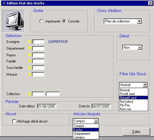 Alegerea detaliului (sau nu) permite editarea tuturor articolelor selectiei afisate sau doar in suma totala. Deasemenea se poate face selectie la nivel cantitate(pozitiv, negativ,nul.), sau articole blocate (incluse, excluse.)