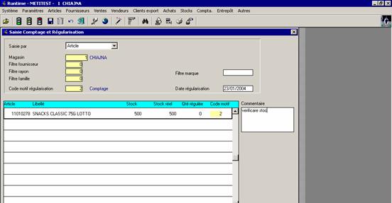 Se face din grila Stocuri/Actualizare/Numarare si regularizare