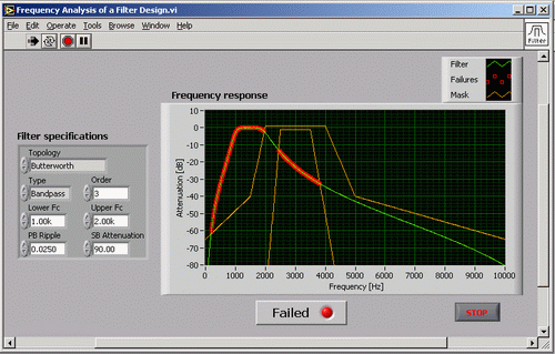 Fig.5.1. Instrument virtual pentru analiza frecventei unui filtru realizat cu LabView