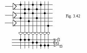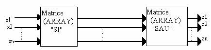 Fiecare intrare xi dispune de un circuit buffer care ofera la iesirea sa atat de directa xi,cat si valoarea complementata xi,astfel incat,la intrarea unei porti"SI" poate fi conectata una dintre cele 2 variante ale variabilei xi.In figura este prezentat un exemplu de implementare a urmatorului set de functii de comutatie: