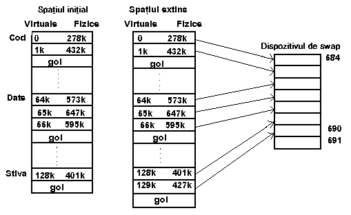 Figura 11.6 ofera un exemplu de mapare a imaginii din memoria interna a unui proces în zona de evacuare.