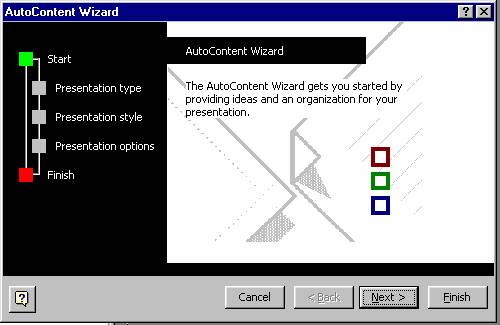 Se realizeaza alegand optiunea AutoContent Wizard din fereastra anterioara sau alegem File->New..->din fereastra care apare alegem General->AutoContent Wizard->clic pe butonul Ok.