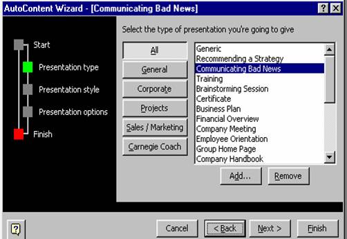 utilizarea instrumentului AutoContent Wizard (Prezentarea cu asitenta) daca aveti nevoie de asistenta in ceea ce priveste proiectarea si realizarea continutului prezentarii.
