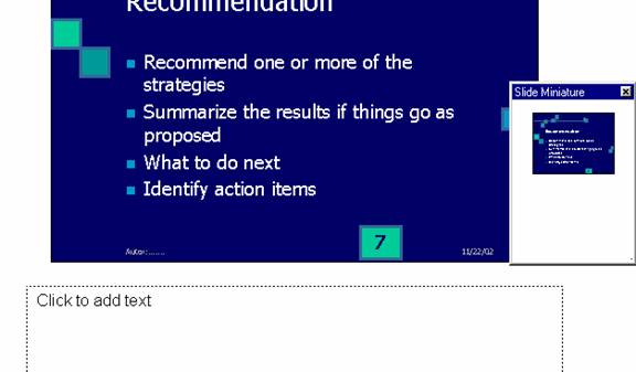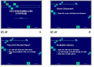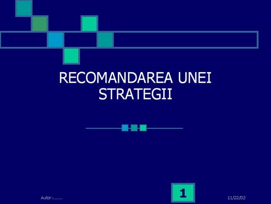 Exemplu: prima pagina a unei prezentari numita "Recomandarea unei strategii"( modul de prezentare Slide)