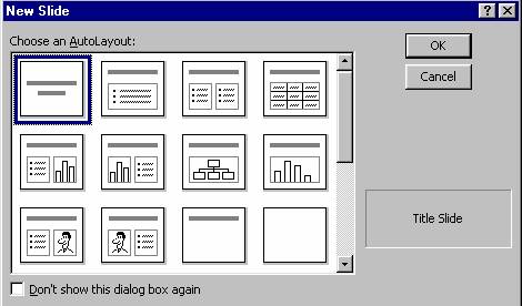 Daca alegem din bara de meniu File-> New..->General-> Blank Presentation (prezentare noua), va fi afisata urmatoarea caseta de dialog: