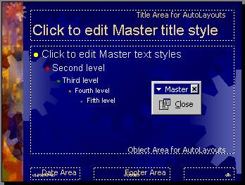 Pentru a modifica un element din pagina Master, se alege View->Master->Slide Master. Se efectueaza clic in orice zona pentru a edita elementele corespunzatoare. De exemplu, pentru modificarea fontului titlului, se da clic in zona ce contine titlul si se alege fontul dorit.