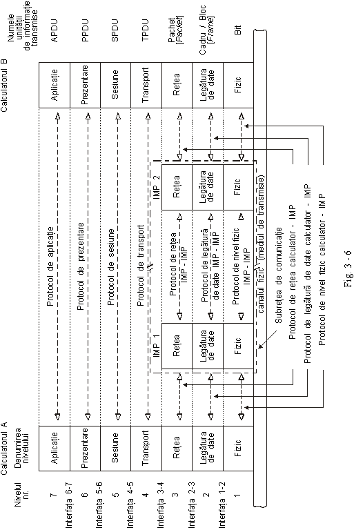 Modelul de referinta OSI (ISO) este reprezentat în fig. 3 - 6 , unde sunt indicate si denumirile unitatilor de informatie vehiculate (fizic sau virtual) la fiecare nivel ierarhic.