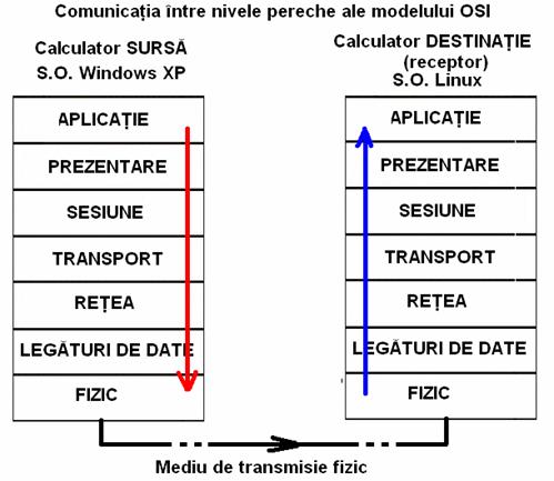 Īn cadrul modelului OSI fiecare nivel comunica cu nivelul corespunzator al celuilalt calculator.