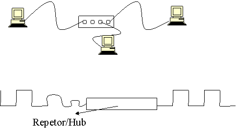 Ceea ce face un repetor/hub este regenerarea (marirea tensiunii) semnalului la primirea acestuia, apoi de a-l trimite mai departe.