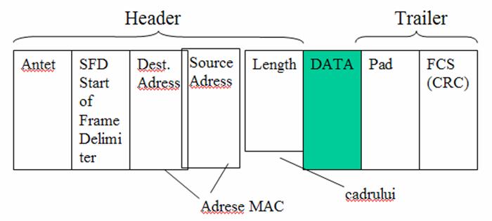 Notiunea de cadru difera de celelalte unitati de informatii, contine alte elemente, īn funtie de tipul retelei - cadrul va fi diferit īn retelele Ethernet de cel din retelele Token Ring.