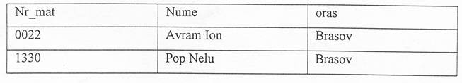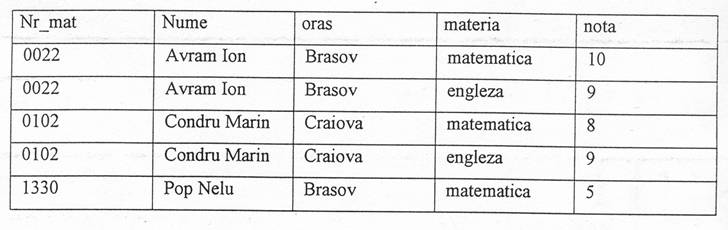 Deci daca avem schema catalog=(nr_mat,materia,note) cu avea tupele: