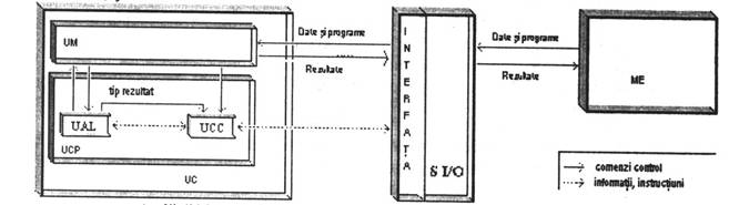 UC = unitatea centrala - alcatuita din unitatea de memorie (memoria interna - UM) si unitatea centrala de prelucrare a datelor (UCP)