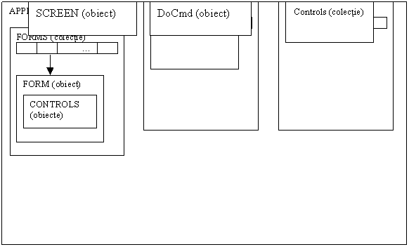 Acestea sunt: Application, Form, Control, Report, Module, Screen, DoCmd. Toate obiectele au proprietati si metode.
