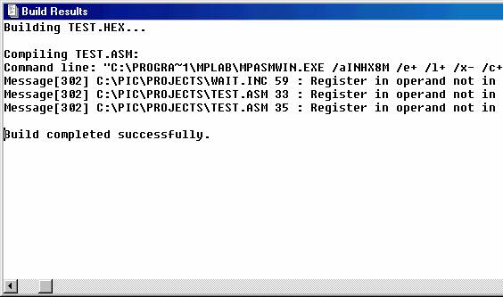 Putem vedea din imagine ca obtinem fisierul "test.hex" ca rezultat al procesului de translare, pentru care este folosit programul MPASMWIN, si ca este doar un mesaj. În toate aceste informatii, ultima propozitie în fereastra este cea mai importanta pentru ca arata daca translarea a fost sau nu facuta cu succes. 'Build completed successfully' este un mesaj afirmând ca translarea a fost de succces si ca nu sunt alt erori.