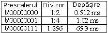 timeconst_2 este un numar de la 0 la 255. Prin multiplicarea acestui numar cu perioada de timp de depasire (overflow) vom obtine durata totala a întârzierii: TIME = timeconst_1 x 1.02ms x PRESCext.