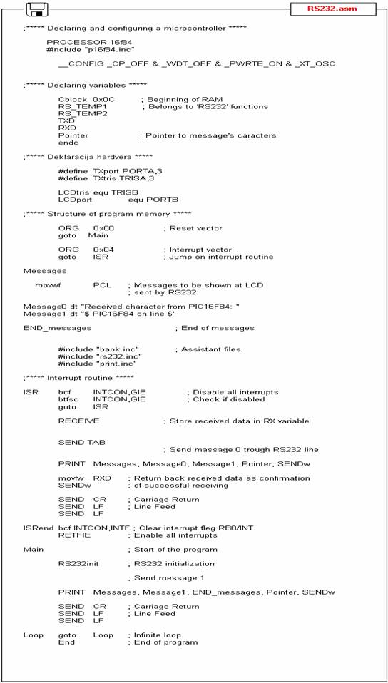 Fisier Source - Fisier scris în limbjul înteles de om si de translatorul assembler. Prin translarea fisierului sursa, obtinem fisierele HEX si LIST.