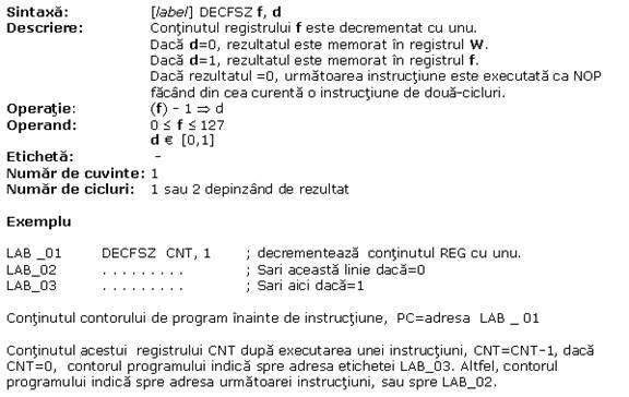A.27 DECFSZ Decrementeaza f, sari daca = 0