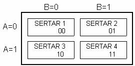 Pentru a întelege logica numerelor binare, vom considera un exemplu. Sa spunem ca avem un mic dulapior cu patru sertare, si ca trebuie sa spunem cuiva sa ne aduca ceva din unul din sertare. Nimic nu este mai simplu, vom spune partea stânga, jos (sertarul), si sertarul dorit este clar definit. Totusi, daca ar fi trebuit sa facem aceasta fara folosirea instructiunilor ca stânga, dreapta, jos, sus, etc., atunci am fi avut o problema. Sunt multe solutii la aceasta problema, dar noi ar trebui sa cautam una care este cea mai benefica si practica! Sa desemnam rândurile cu A, si tipurile cu B. Daca A=1, se refera la rândul de sus a sertarelor, si pentru A=0, rândul de jos. Similar cu coloanele, B=1 reprezinta coloana stânga, si B=0, dreapta (urmatoarea imagine). Acum este deja mult mai usor de a explica din care sertar avem nevoie de ceva. Trebuie doar sa formulam una din cel patru combinatii: 00, 01, 10 sau 11. Aceasta caracteristica denumind fiecare sertar individual nu este decât reprezentarea numerica binara, sau conversia numerelor comune dintr-o forma zecimala într-una binara. Cu alte cuvinte, referirile ca "primul, al doilea, al treilea si al patrulea" sunt schimbate cu "00, 01, 10 si 11".