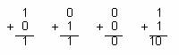Adunarea se face asa încât cifrele din aceeasi pozitie nmerica sunt adunate, similar sistemuluii numeric zecimal. Daca ambii digiti de adunat sunt zero, suma lor ramâne zero, si daca sunt '0' si '1', rezultatul este '1'. Suma a doi de unu da zero, dar cu transferarea unui '1' la pozitia de mai sus care este adunat cifrelor din acea pozitie.