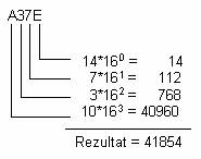 Pentru a obtine un zecimal echivalent a unui numar hexazecimal, trebuie sa înmultim fiecare cifra a unui numar cu numarul 16 care este gradat prin pozitia acelei cifre în numarul hexazecimal.