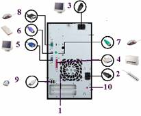 In spatele calculatorului, in general, trebuie sa aveti urmatorii conectori: