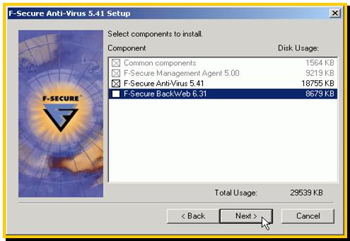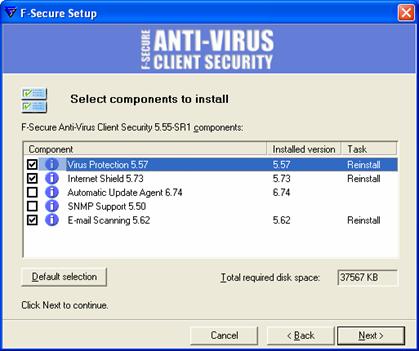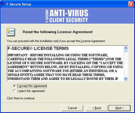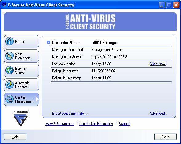 generala a functionarii produsului F-secure Anti-virus Client Security