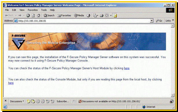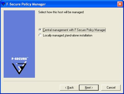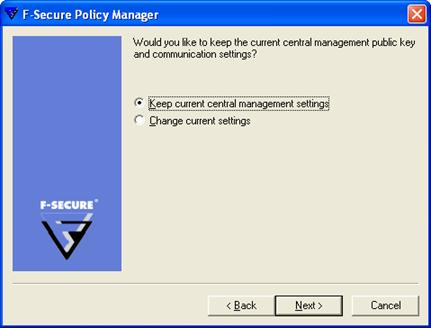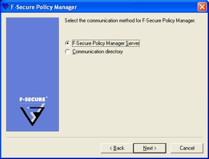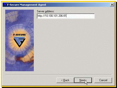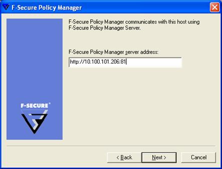 Apoi se introduce adresa serverului "F-secure Policy Manager": https://10.100.101.206:81