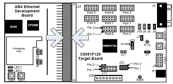 Conectati placa de ethernet AB4 cu placa C8051F120